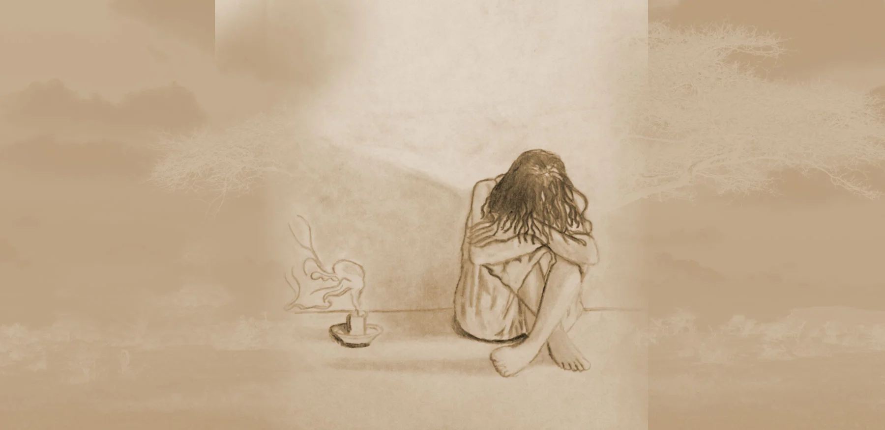 When the author began the process of attempting to find appropriate cover art for the book, she thought to ask Ben to attempt to put to paper what he remembered watching her grieve looked like...and that's when the woman and the candle came into focus. The first draft (shown below) took everyone's breath away, including Susan's publisher & marketing team...the only needed change was to add color, quickly giving life to the now-recognizable paperback cover.
